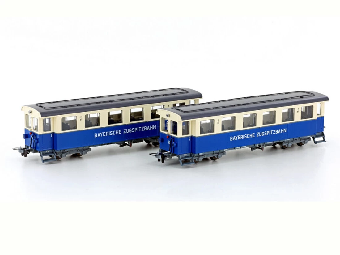 Modell: Spur H0e Gleichstrom. Personenwagenset mit zwei Wagen der Bayerischen Zugspitzbahn.