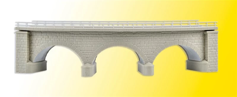 Modell: Spur Z. Bausatz. Für alle gängigen Gleissysteme und Spur Z geeignet. Zweigleisiger Aufbau mit Art. 37661 möglich. Dazu passen die Pfeiler Art. 37675. Radius = 220 – 228,5 mm, 45°. Fahrbahnhöhe: 4,8 cm. Durchfahrtshöhe: 3 cm. Durchfahrtsbreite: 4,5 – 5 cm.