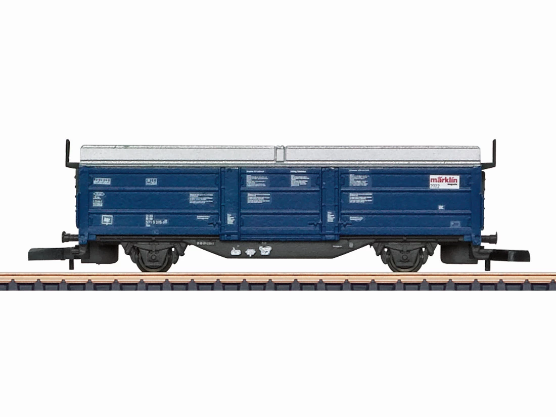 Modell: Spur Z. 2-achsiger Schiebedach-/Schiebewandwagen Tbis 871, als Privatwagen des Märklin-Magazins eingestellt bei der Deutschen Bundesbahn (DB). Betriebszustand der Epoche IV. Wagenaufbau aus Kunststoff, hochdetailliert und fein bedruckt. Angesetzte stirnseitige Bühnen.