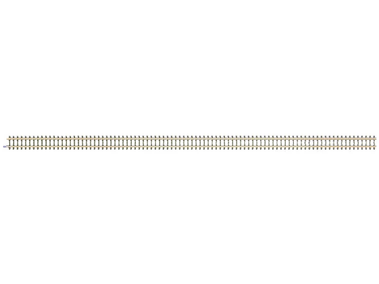 Länge 660 mm. Neues Gleis in vorrbildgerechter grauer Betonschwellenoptik, damit auch der aktuelle Zustand der Bahngleise nachgebildet werden kann. Flexibles Gleis durch Aufschneiden des Schwellenbandes. Schienen und Schwellenbänder kürzen und neue Verbindungslaschen (8954) anbringen.