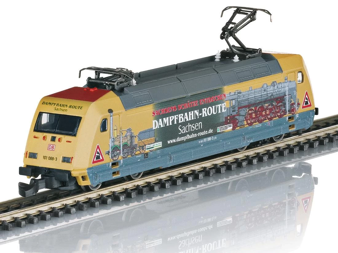 Modell: Spur Z Gleichstrom. Ausgerüstet mit Glockenankermotor. Beide Drehgestelle angetrieben. Beleuchtung mit wartungsfreien warmweißen/roten Leuchtdioden. Stromaufnahme umschaltbar auf Oberleitung.