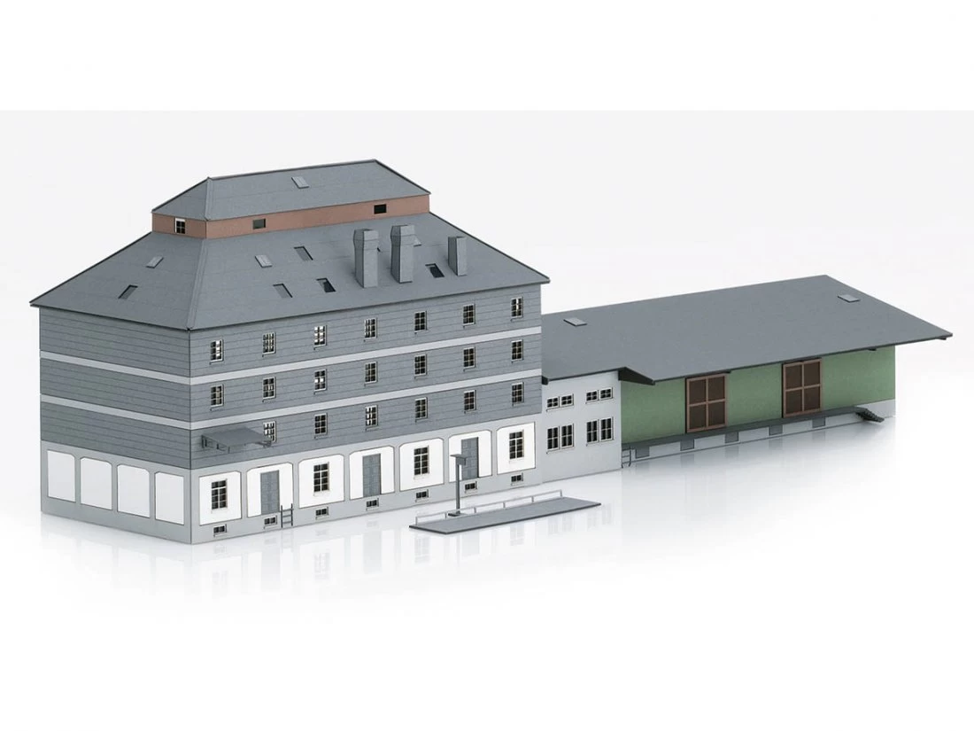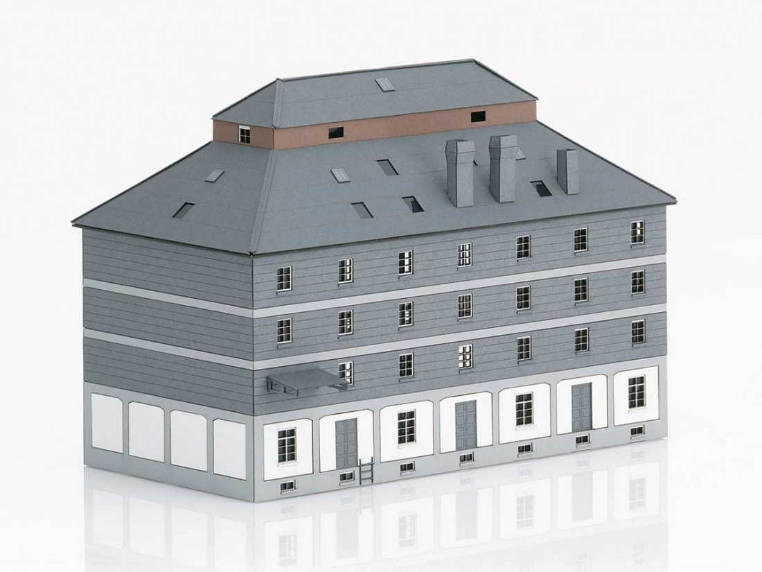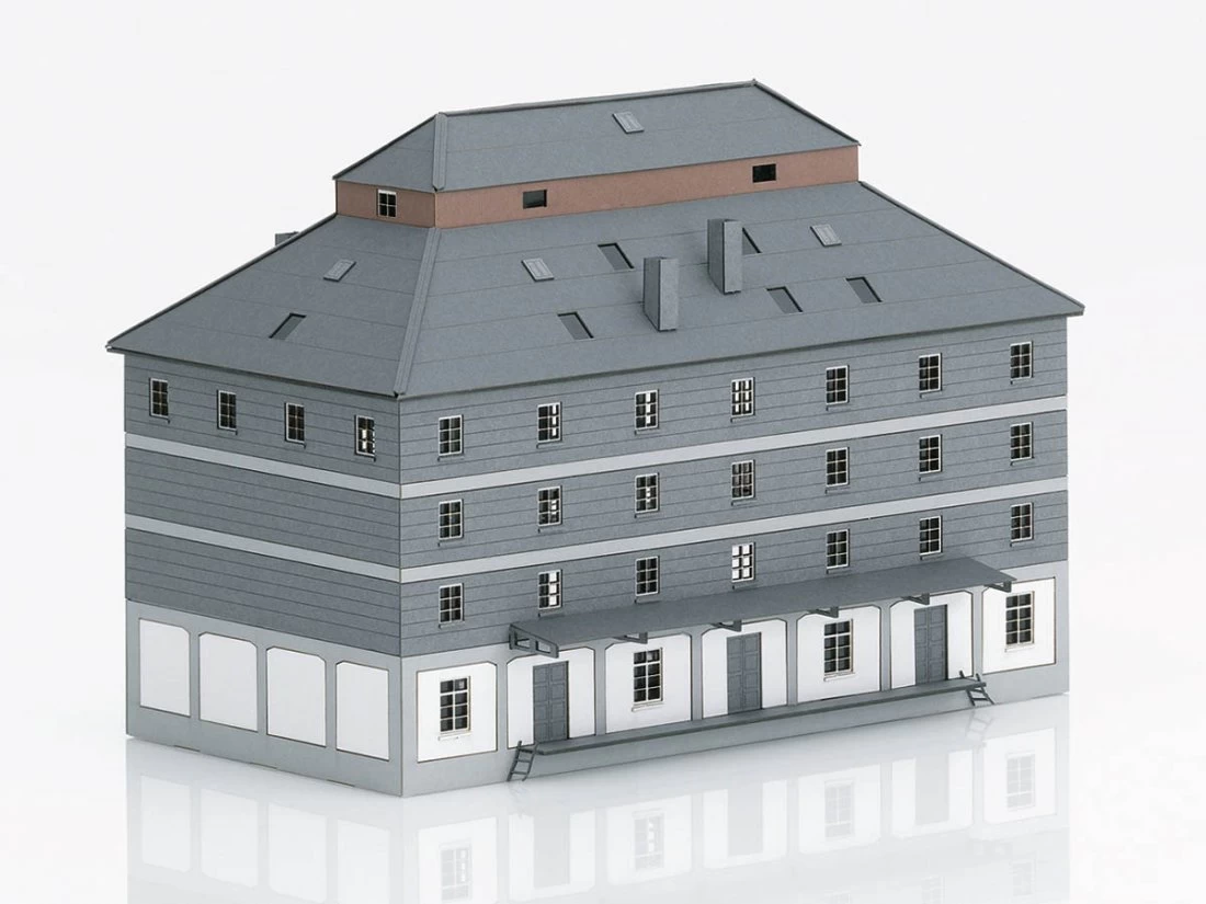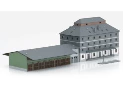Sehr filigran und äußerst detailliert gelasertes, passgenaues Modell mit zahlreichen Details. Modellrahmen, Innenbereich und Korpus aus Grafikkarton in verschiedenen vorbildgerechten Farbtönen. Fensterverglasung im Lieferumfang enthalten. Die Trennstellen sind vormarkiert, sodass wahlweise Hanglagen oder ebene, höhenreduzierte Aufstellpositionen leicht umzusetzen sind. Beide Gebäude auch separat stellbar. Ausführliche Bauanleitung im Lieferumfang. Maße Modell Lagerhaus: LxBxH ca. 127 x 64 x 82 mm. Maße Modell Markthalle: LxBxH ca. 153 x 65 x 39 mm.