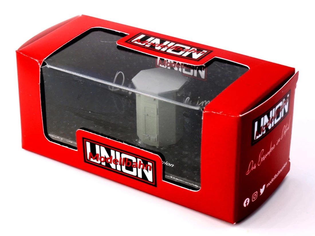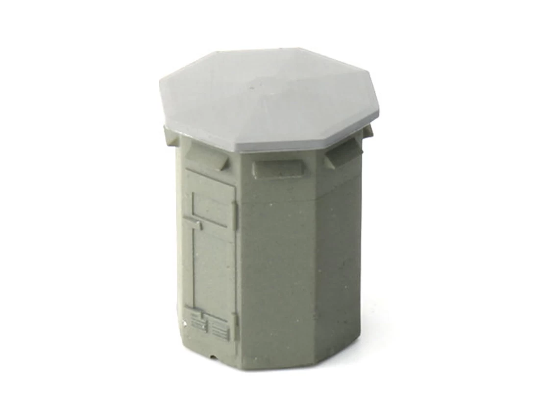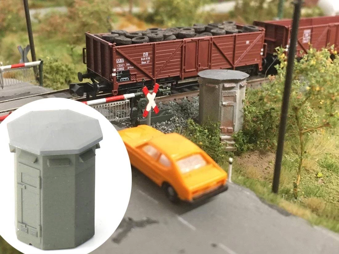 Modell: Spur TT. Ein achteckiges Schalthaus, wie es an vielen Bahnübergangen steht. Fertigmodell bemalt.