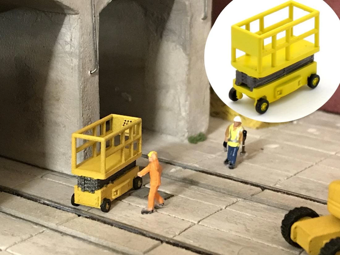Modell: Spur TT. Eine Scherenarbeitsbühne, Fertigmodell aus Kunststoff, bemalt.