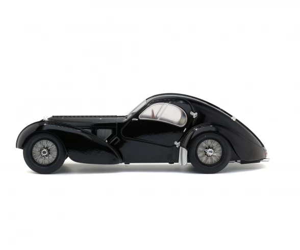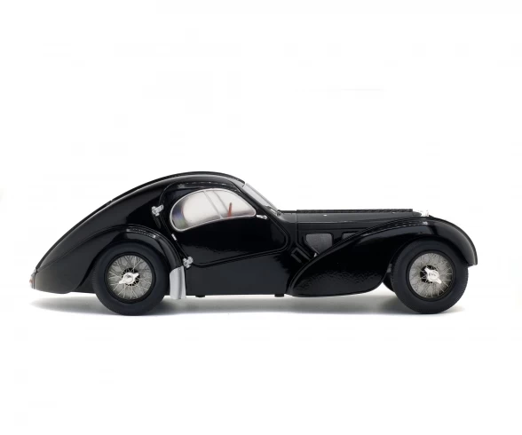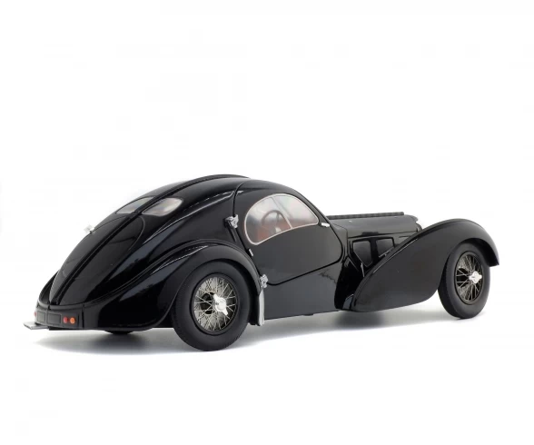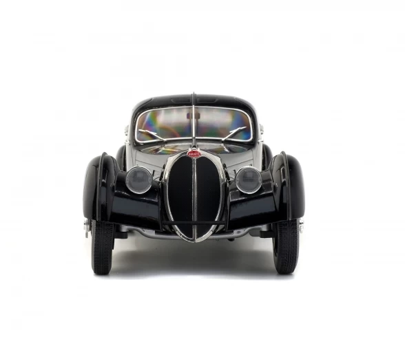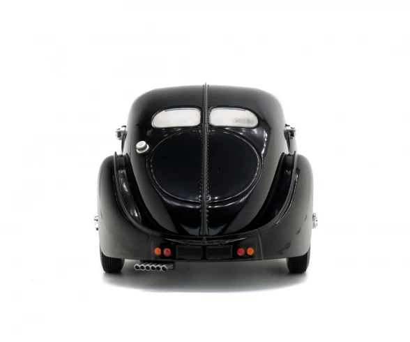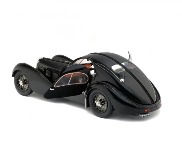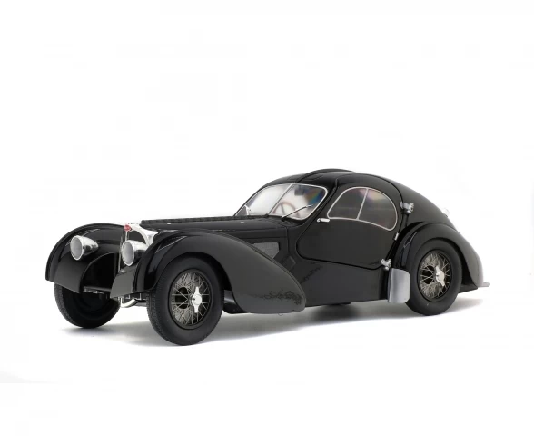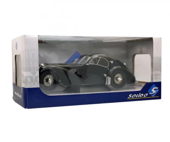 Der Bugatti Atlantic gehörte zur Bugatti Type-57-Baureihe. Die Bezeichnung SC stand im französischen für „tiefergelegt und Kompressor“. Der Type 57 SC war eine Weiterentwicklung des 57 S, verfügte jedoch zusätzlich über einen Kompressor, der die Leistung von 175 auf 200 PS steigerte. Diese Kreation des berühmten Ettore Bugattis erreichte seinerzeit unglaubliche 190 km/h Spitzengeschwindigkeit. Dieses automobile Juwel der 30er Jahre wurde lediglich dreimal produziert und heute zu Preisen jenseits der 30 Mio. Euro Grenze gehandelt. Solido presents the die-cast Bugatti Type 57 Atlantic in 1:18 scale. The model comes with many lovingly crafted details, such as opening and a functioning steering system.
