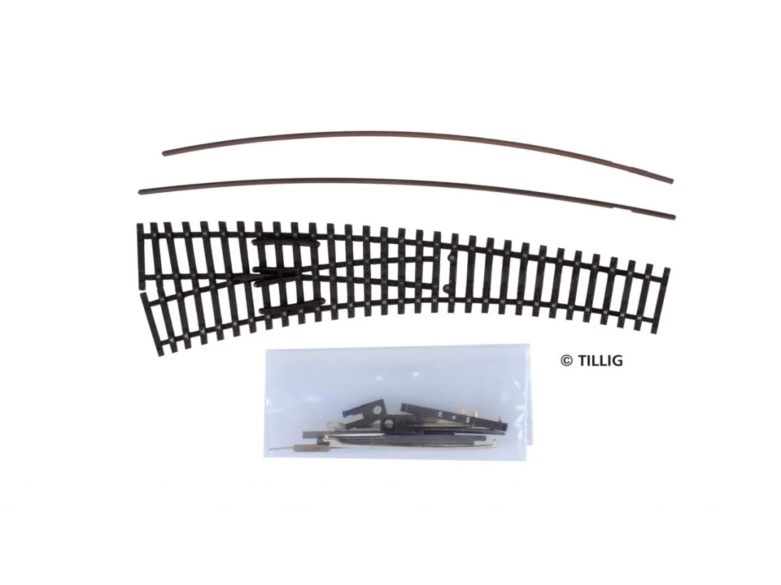 Modell: Spur TT. Gleis Innenbogenweiche links IBW15 Grad Bausatz brüniert. Das Tillig TT-Modellgleissystem mit 2,07 mm hohen Schienenprofilen aus Neusilber hat neben blanken auch brünierte Schienenprofile. Weichen sind mit verschiedenen Herzstückwinkeln im Sortiment. Neben einfachen Weichen gibt es zahlreiche weitere Formen wie Innenbogen-, Außenbogen- und Doppelkreuzungsweichen, doppelte Gleisverbindungen und Dreiwegeweichen. Zusätzlich zu den angebotenen Gleisradien gibt es Flexgleise mit verschiedenen Schwellenarten: Holzschwelle, Stahlschwelle und Betonschwelle. Außerdem werden fast alle Gleiselemente auch als Bausatz angeboten. Ergänzt wird das Modellgleissystem durch die STYROSTONE®-Gleisbettung mit echtem Schottermaterial. Damit erhalten die Gleise auf schnelle und einfache Art ein Schotterbett, ohne dass ein aufwendiges Einschottern per Hand notwendig wird.