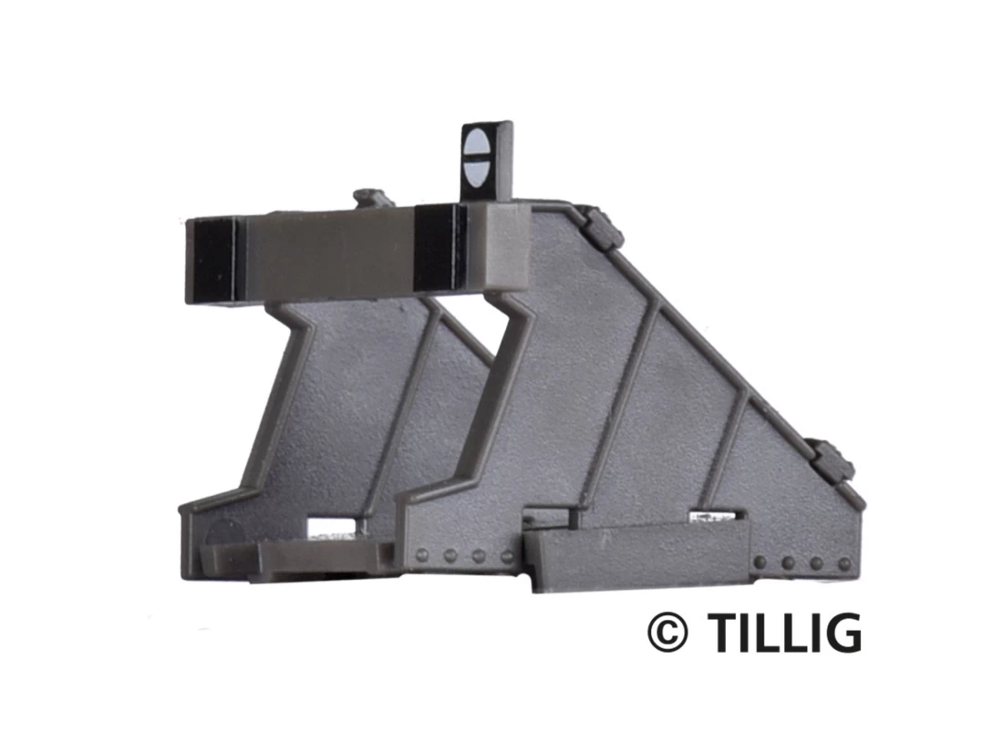 Modell: Spur TT. Prellbock Bausatz grau 4x. Das Tillig TT-Modellgleissystem mit 2,07 mm hohen Schienenprofilen aus Neusilber hat neben blanken auch brünierte Schienenprofile. Weichen sind mit verschiedenen Herzstückwinkeln im Sortiment. Neben einfachen Weichen gibt es zahlreiche weitere Formen wie Innenbogen-, Außenbogen- und Doppelkreuzungsweichen, doppelte Gleisverbindungen und Dreiwegeweichen. Zusätzlich zu den angebotenen Gleisradien gibt es Flexgleise mit verschiedenen Schwellenarten: Holzschwelle, Stahlschwelle und Betonschwelle. Außerdem werden fast alle Gleiselemente auch als Bausatz angeboten. Ergänzt wird das Modellgleissystem durch die STYROSTONE®-Gleisbettung mit echtem Schottermaterial. Damit erhalten die Gleise auf schnelle und einfache Art ein Schotterbett, ohne dass ein aufwendiges Einschottern per Hand notwendig wird.