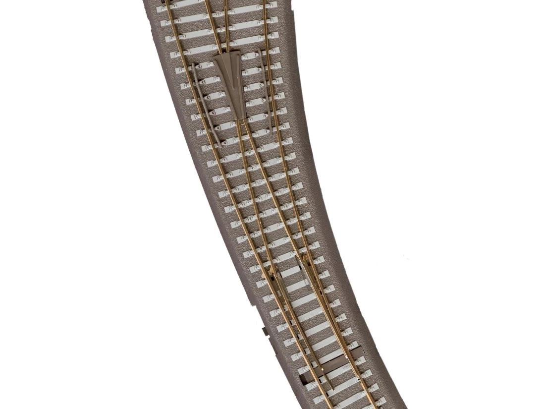 Modell: Spur TT. Gleis mit Bettung IBW rechts Innenbogenweiche Handantrieb 15 Grad grau.