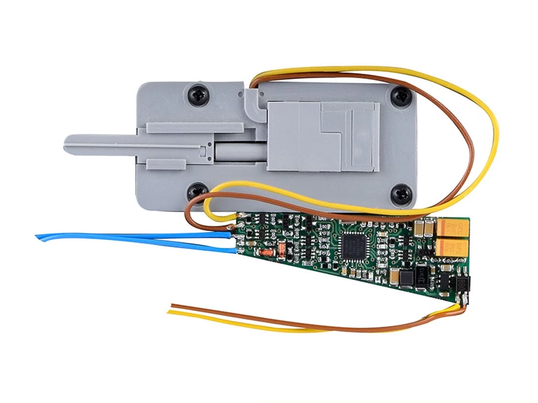 Modell: Spur TT. Dieser spezielle Weichenantrieb ist ein kraftvoller, geräuscharmer Antrieb mit zugehörigem Digitaldecoder zum Einbau in TT-Bettungsweichen. Der Decoder befindet sich als Baugruppe im Kabel, daher ist der Antrieb besonders kompakt. Der Weichenantrieb zeichnet sich durch vorbildgerecht langsame Bewegung der Weichenzungen aus. Geschwindigkeit und Bewegungsablauf sind elektronisch gesteuert und gewährleisten einen feinfühligen Antrieb. Wenn aufgrund der Eigenschaften Ihrer Weiche die Bewegungsrichtung nicht mit der Schaltrichtung auf Ihrem Eingabegerät übereinstimmt, können Sie im Digitalbetrieb die Stellrichtung des Antriebs invertieren. Der zugehörige Decoder versteht die Formate Märklin-Motorola und DCC und kann die angeforderte Soll-Stellung oder die Ist-Stellung per RailCom an geeignete Digitalzentralen, z. B. Viessmann Commander Art. 5300/5320, zurückmelden. Er kann aber auch analog betrieben werden. Zusätzliche Schaltausgänge für konventionelle Stellungsrückmeldung und Herzstückpolarisation vervollständigen den Funktionsumfang. Deren Funktion ist konfigurierbar.